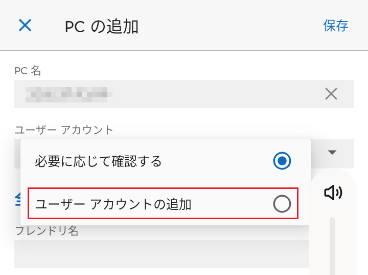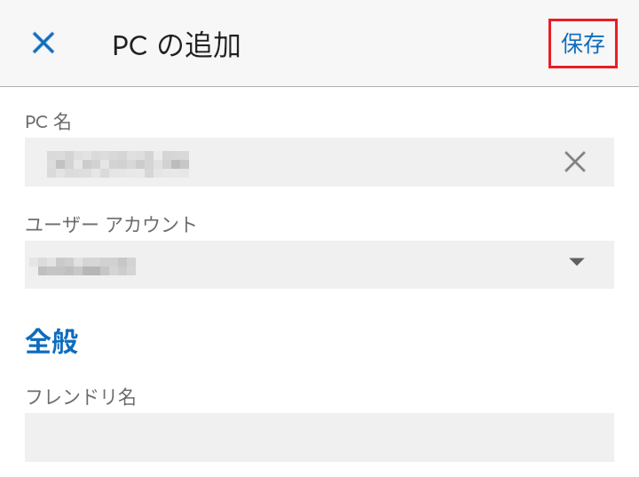 PCの追加情報の入力がすべて終わったら、画面右上の[保存]をタップして、リモートPC(VPS)を登録します。