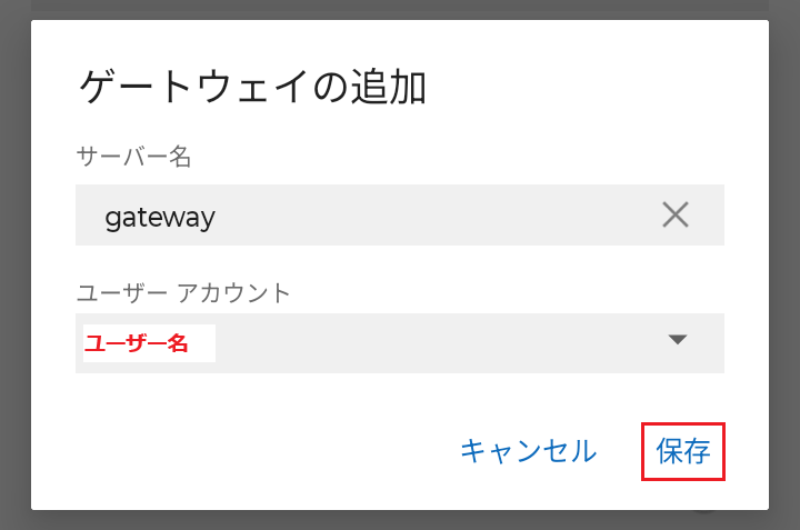 [サーバー名]にゲートウェイサーバー名またはゲートウェイサーバーのIPアドレスを入力します。