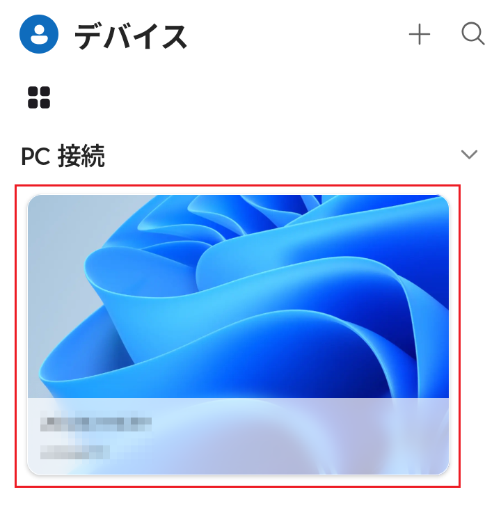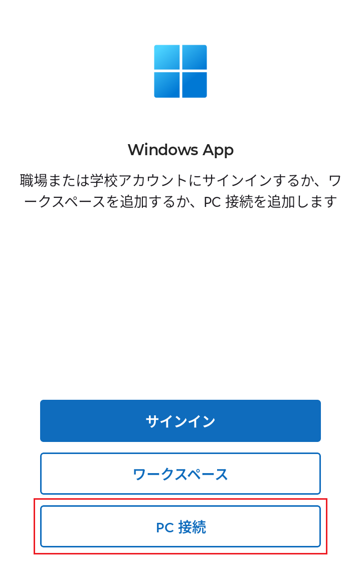 「Windows App」の画面が表示されるので[PC接続]をタップします。