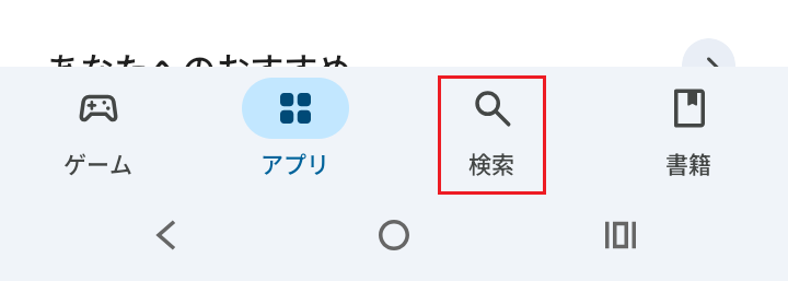 [Playストア]をタップして開いたら、画面下部のメニューの[検索]をタップします。